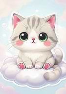 Cute Kitten on Cloud Illustration