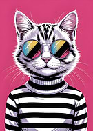 Cool Cat in Striped Turtleneck Shades