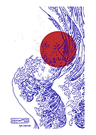 Japanese Wave Art with Red Sun
