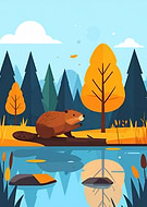 Beaver in Autumn Landscape Illustration