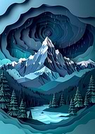 Paper Cutout Mountain Landscape with River