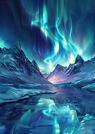 Aurora Borealis Over Mountains