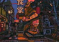 Pixel Art Japanese Street Scene