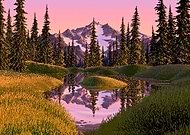 Pixel Art Mountain Lake Reflection Landscape