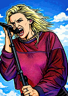 Woman singing into microphone