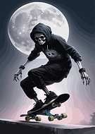 Skeleton Skateboarder Under Moonlight