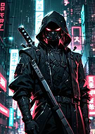 Cyberpunk Ninja in Neon Cityscape