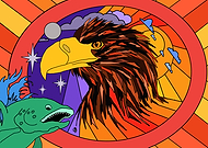 Eagle and Salmon in stained glass style Landscape