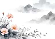 Watercolor floral painting with clouds