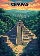 Palenque Mayan Ruins Chiapas Mexico Retro Anime Landscape Vintage Travel Poster
