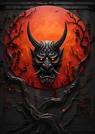 Japanese Oni Mask with Red Moon