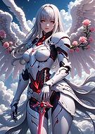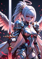Winged Warrior Woman with Red Eyes