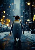 Penguin in a Snowy City