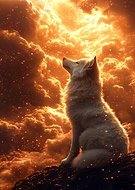 White wolf in fiery clouds