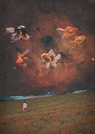MishMash Birdie is a digital collage artist based in South Africa. She uses public domain photographs, and her own to bring to life vibrant surreal landscapes.