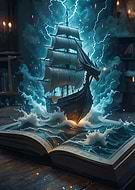 Fantasy Ship Emerging from a Book