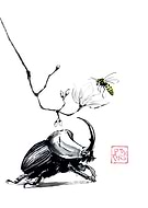 old japanese technique from the 8th century. it consists to draw in a few lines only with chinese ink on paper. this art is part of zen culture