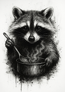 Welcome to a world of monochrome raccoon art where everyday life meets creative imagination. Perfect for lovers of modern wall art, animal illustration, and unique monochrome home decor.