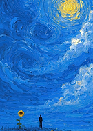 Man and Sunflower Under Starry Sky