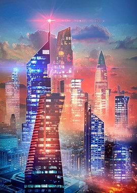 Digital collage City of the future, Futuristic Art work